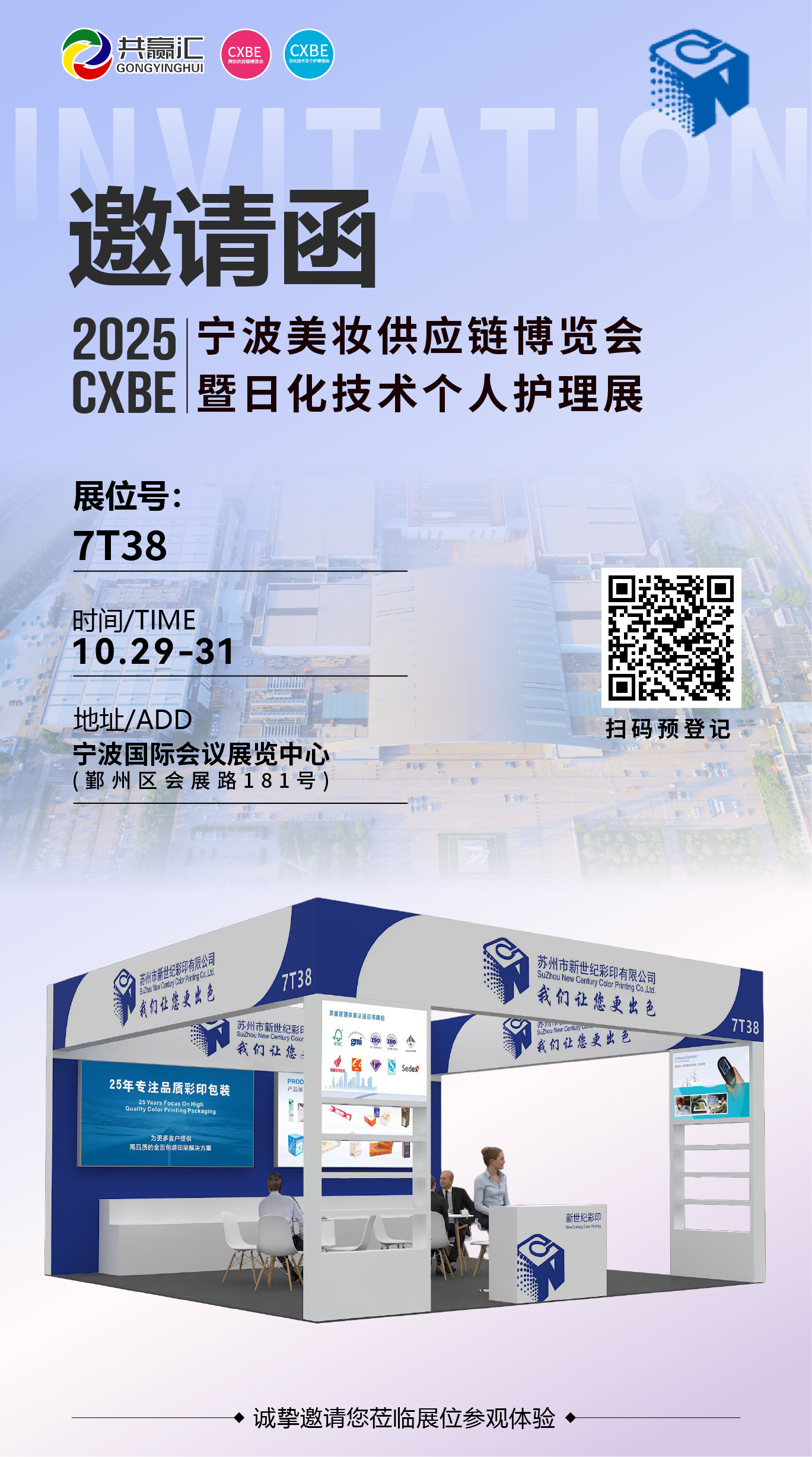 Suzhou New Century Color Printing Co., Ltd. nodigt alle aanwezigen van harte uit voor een bezoek Stand 7T38 om zijn productassortiment te verkennen en mogelijke samenwerkingen te bespreken.